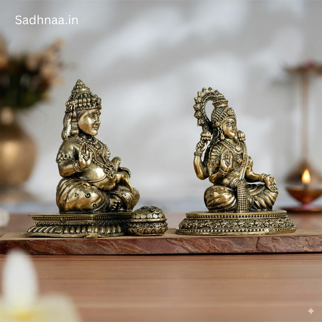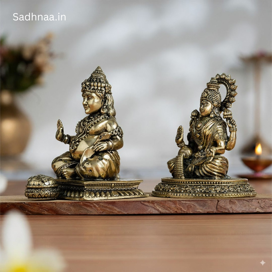 Brass Maa Lakshmi & Kuber Statue Pair (4 Inch)