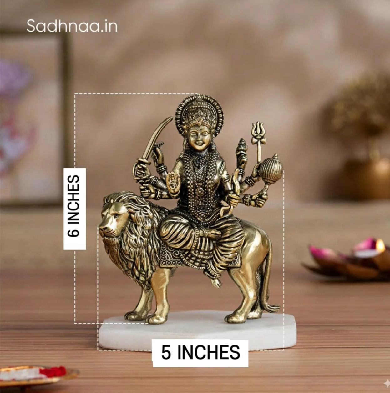 Brass 8 Armed Maa Durga Idol Sitting on Lion (6 Inch)