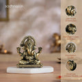 The intricate craftsmanship of this Brass Dagdusheth Ganpati idol captures the majestic details of the original, from the ornate crown to the serene expression on Lord Ganesha’s face including the orientation of his trunk.