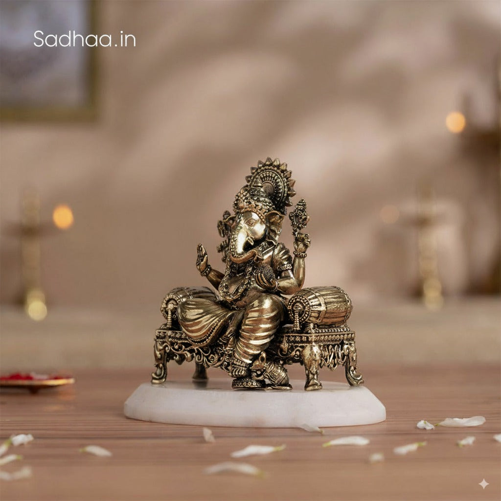 Brass Ganesh Idol Virajman On Sinhasan (4 Inch)