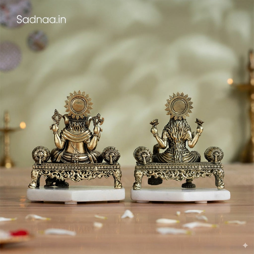 This brass Lakshmi Ganesh idol set is ideal for pooja rooms, serving as both a spiritual centerpiece and an elegant decor item. As affordable Diwali gifts or housewarming gifts, they bring divine energy to any space.