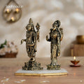 Meticulously cast, this auspicious duo depicts Shri Venkateswara Swamy and Goddess Lakshmi standing tall on ornate brass bases.