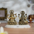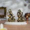 Perfect for weddings and special occasions, this brass Lakshmi Ganesh idol symbolizes prosperity and success. Add this beautifully crafted murti pair to your collection for a touch of elegance and cultural charm.